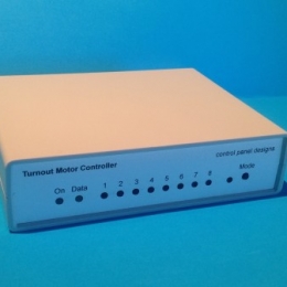 The Turnout Motor Controller has 8 ports and can control 8 turnouts, or groups of turnouts (Multiple slow motion turnout motors, such as Tortoise or Cobalt, can be wired together, and can be connected to one port. e.g. for a crossover.)